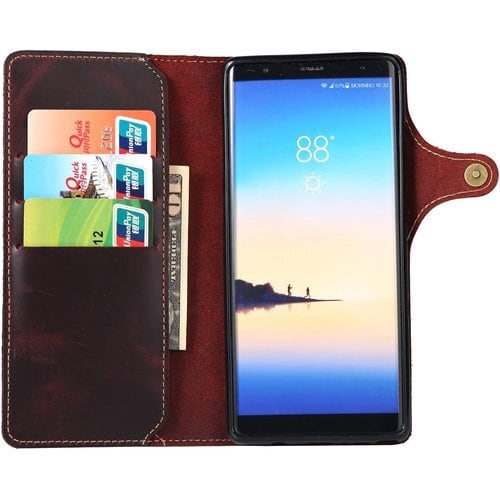 Galaxy Note 8 対応 本革ケース 手帳型 マグネット式スナップ カード入れ ストラップ付き 高級牛革カバー 耐衝撃 TPU素材ケース SC-01K/SCV37 ギャラクシーノート8 ケース ワインレッド 157