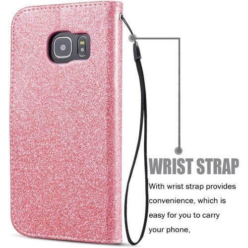 QLTYPRI Samsung Galaxy A6 2018 ケース 手帳型 PUレザーマグネット カード収納 スタンド機能 全面保護 耐衝撃 かわいい おしゃれストラップ付き ギャラクシーA6 2018 ケース - ピンク 177