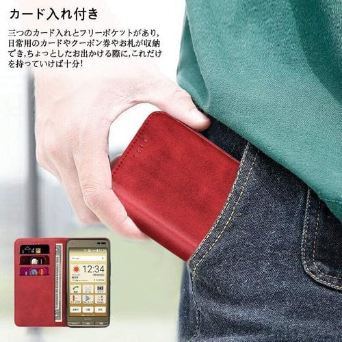 BASIO3 KYV43 ケース 手帳型 カバー KYOCERA 適用 BASIO 3 京セラ ベイシオ3 KYV43 ケース スマホケース 携帯カバー 手帳 財布 適用 case iCovercase 内蔵マグネット 弱磁 携帯カバー カード入れ スタンド シンプル カバー 落ち着いた色 スマホ 保護 レトロ レッド 245