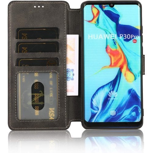 QLTYPRI Huawei P20 Pro ケース 手帳型 本革レザー カード収納 横置き Qi充電対応 耐衝撃 全面保護 シンプル 人気 おしゃれ 財布型 カバー - ブラック 272