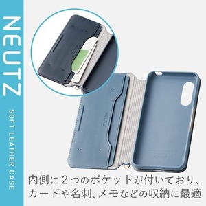 エレコム AQUOS sense3 lite/AQUOS sense3 / Android One S7 ケース NEUTS ソフトレザー モダン×カジュアル 心地よいスタンダード マグネット付き スタンド機能 ブルー PM-AQS3PLFY2BU 326