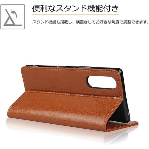 SKIASE Xperia 5 ケース SOV41 au doo SO-01M 手帳型 エクスぺリア 本革 カバー マグネット無し 財布型 落ち着い色 シンプルデザイン カードポケット スタンド機能 ライトブラウン 353
