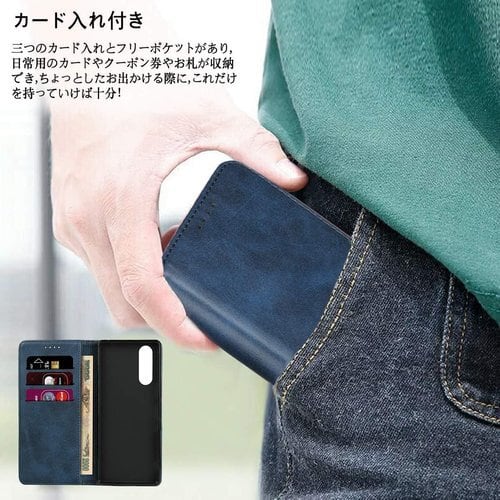 Xperia 5 ケース 手帳型 SOV41 au / SO-01M doo/ SoftBank 対応 ケース ソニー xperia5 ケース 手帳型 SOV41 SO01M ケース カバー エクスペリア 5 エクスペリア5 Xperia5 手帳 適用 case iCoverCase 内蔵マグネット 携帯カバー カードポケット カード入れ スタンド機能 シンプル 落ち着いた色 スマホ 保護 携帯ケース レトロ ネイビー 356
