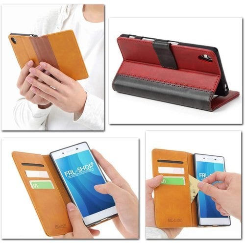 AQUOS Sense3 / Sense3 lite 兼用 ◆ バイカラ― レザー 手帳型ケース ◆ F-28 ◆ ブラック FRL-SHOP 392