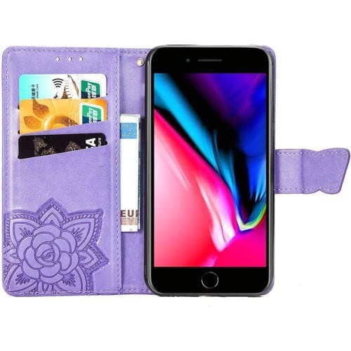 対応iPhone SE 第3世代 2022 / iPhone SE 第2世代 2020 / iPhone8 / iPhone7 ケース 手帳型 ノートブック型携帯保護カバー多機能携帯ホルスター財布携帯ホルダーバンプパターンテクスチャ耐久性摩擦耐性携帯ケース男性と女性に適した多色オプション バタフライラベンダー 465