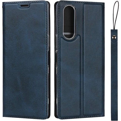 Elick Xperia 5 SO-01M SOV41 ケース カバー 超薄型 軽量 手帳型 エクスぺリア5 SOV41 SO-01M ケース 高級PUレザー マグネット式 ストラップ付き カード収納 スタンド機能 スマホケース ネイビー 538
