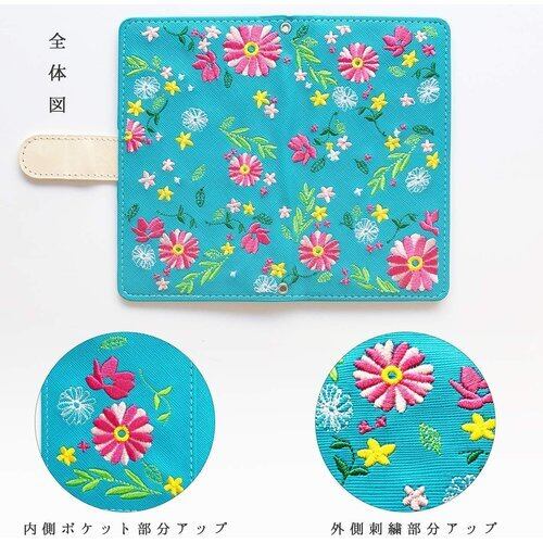 AQUOS sense 2 SH-01L SHV43 SH-M08 かんたん SHV43K Android one S5 手帳型 ケース カバー SH01L SH-01Lケース SHV43ケース SH-M08ケース SH01Lケース SHM08ケース 手帳ケース 手帳型ケース スマホケース ヌメ花刺繍 ターコイズ 7