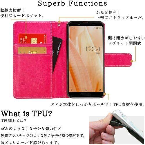 カードなどが収納できるポケット付きで、実用的な手帳型ケースです。手帳表面に特殊な加工を施してありますので細かいキズなどがある場合がございます。予めご了承ください。