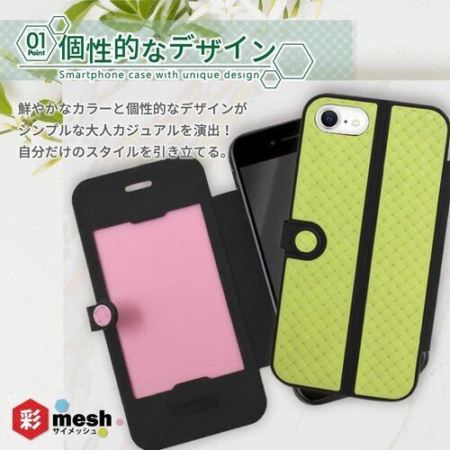 【カラフル彩メッシュ】メッシュ柄でカジュアル&ベーシックな手帳ケースに仕上がっており、多彩な色で毎日をより華やかにしてくれます。※かんたんスマホ2+ / かんたんスマホ2 / BASIO4 は共用です