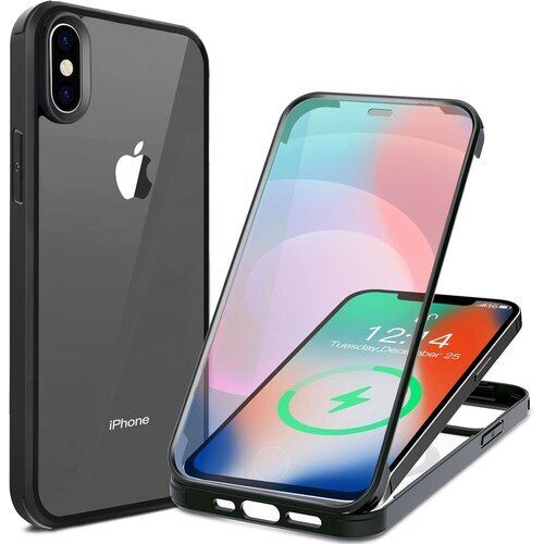 HAUTRKBG iPhone X iPhone XS 用ケース 360°全面保護 両面強化ガラス 100%画面感度フルカバー ワイヤレス充電対応 米軍MIL規格取得 耐衝撃 アイフォンX クリア ケース・スマホケース iPhone XS 人気 5.8インチ ブラック 26