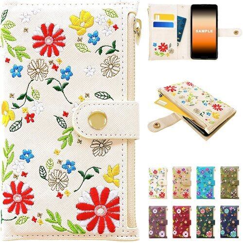 おしゃれ花刺繍 手帳型 ケース カバー