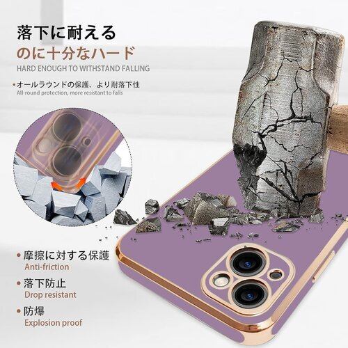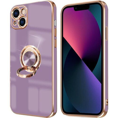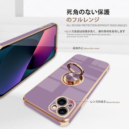 iPhone 13 用の ケース リング付き アイフォン13 用の リング カバー 全面保護 スマホケース TPU 耐衝撃 スタンド機能 車載スタンド対応 ストラップホール付き 擦り傷防止 メッキ加工 6.1インチ パープル 31