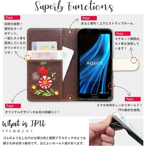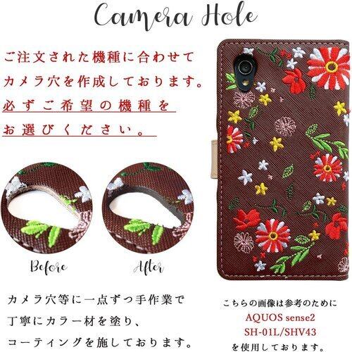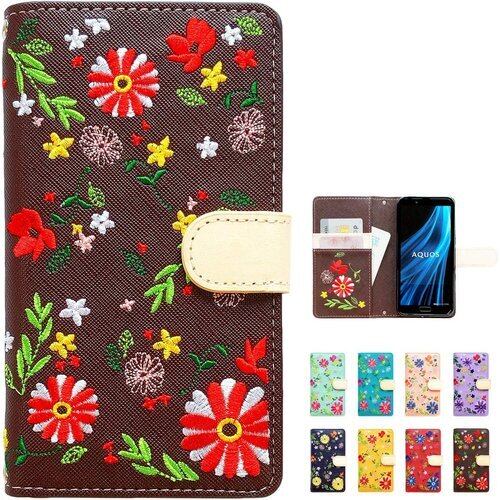 かんたんスマホ3 A205KC 手帳型 ケース カバー かんたんスマホ 3 かんたんスマホ3ケース かんたんスマホ3カバー A205KCケース A205KCカバー 手帳ケース 手帳型ケース スマホケース ちょいヌメ花刺繍 ブラウン 37