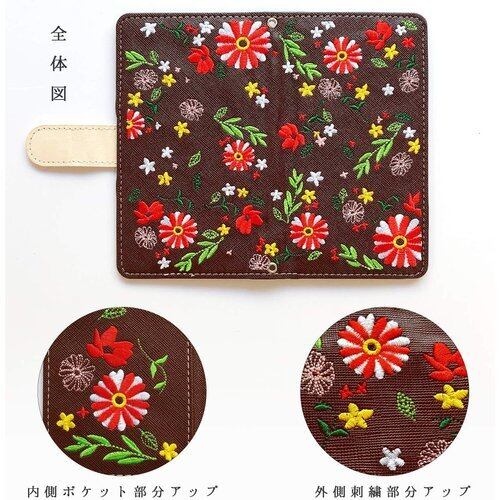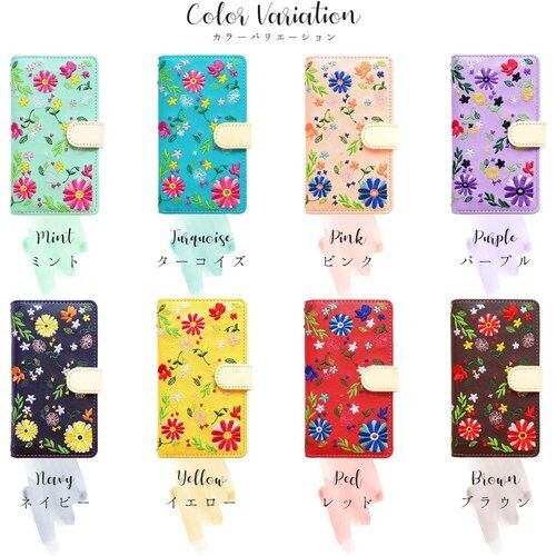 すこしレトロで大人かわいい「 ちょいヌメ花刺繍手帳型ケース 」