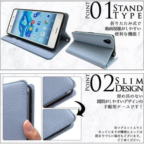 機種に合わせた開口部が開いております。※電源ボタン等はケースの上から押す仕様となっております。ご了承ください。手帳型ケースはスマホ本体より大きめの作りになっております。