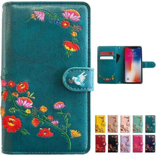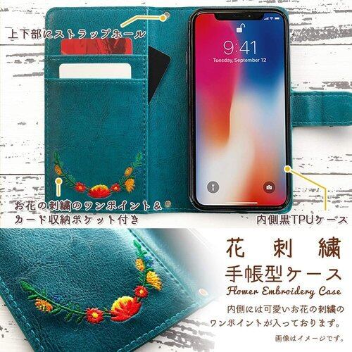 かんたんスマホ 3 A205KC ケース カバー 手帳型ケース ケース カバー 手帳型 A205KCケース A205KCカバー かんたんスマホ3 NB 花刺繍 ジェードバインターコイズ turquoise 41