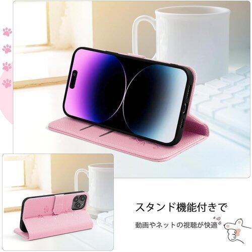 YIMASE iPhone XR ケース 手帳型 携帯ケース iPhone XR スマホケース 手帳型 防塵 iPhoneXRスマホケース アイフォン XR カバー iPhoneXRケース すべてのコントロールと機能に正確かつ簡単にアクセス アイホン XRケース スタイリッシュでかわいい猫柄の iPhoneXRケース iPhone10rケース 内蔵のマグネットとTPU 保護 - ピンク 44