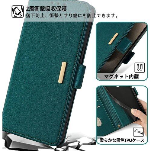 【機能性4:カード収納と安全保護】窓口式のカードスロットとサイドポケットも装備しております。ちょっとした外出する際に、財布が無くても手帳型ケースだけで十分です。内蔵マグネットの留め具なのでピタッと閉まります。クレジットカードなどの情報漏洩を防ぐために、カード入れの内側にRFID自動遮断の素材を採用します、無接触なプライバシー盗難から個人情報を防衛します。ご注意:電磁波を遮蔽する素材なので、カードをいれたままの読み取りはできません。