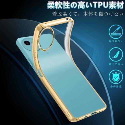 AQUOS wish5 ケース クリア 透明 アクオスwish SH-52F スマホケース 耐衝撃 米軍MIL規格取得 TPU 薄型 軽量 ソフトケース 取付簡単 人気 保護カバー 金 93