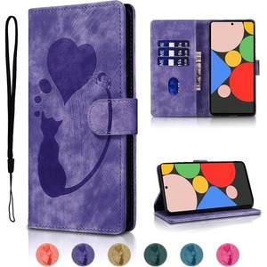 Google Pixel 6a ケース 手帳型 かわいい猫のハート型のパターン スマホケース 25