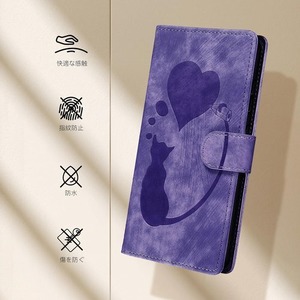 色 ハートと猫 パープル