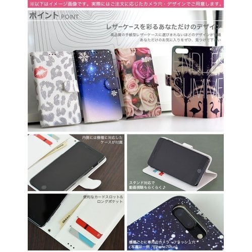 ・ 商品画像はサンプルイメージですので、ご覧の環境によっては多少色味に違いを感じる場合がございます。 ・ カバーのみの販売で本体は付属しません。 ・ ケース装着のまま充電可能ですが、卓上ホルダでの充電は仕様上対象外となります。また、充電ケーブルの差し込み口の位置によっては外側カバーを開く必要があります。 ・ こちらは無地のレザーにデザインをプリントした商品で、デコなどの加工はございません。凹凸や光沢があるように見えたり布地や金属を素材にしたように見える商品もありますが、デザインの図版によるものです。 ・ 撮影時にカバーが映り込む恐れがあるため、カメラ用の穴は若干大きめに開けています。 カメラ穴の位置にわずかなズレが生じる場合がございます。 また印刷時に微妙な画像のズレが生じる場合がございます。 ・ 製作後、すぐに梱包・発送していますため、インク独特の匂いが残る場合があります。こちらは自然と薄まりますが、気になる方は風通しの良い場所で数日保管してください。 ・