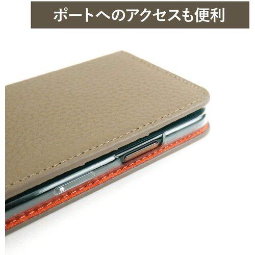 落ち着いた印象のシックなアースカラーの表側と内側のレザーカラーが対照的なスマートフォンケース。