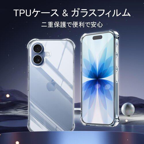 対応 iphone 17 ケース クリア 黄変防止 +iphone 17 ガラスフィルム 柔軟 アイホン17 ケース 耐衝撃 ガラスフイルム保護付き 指紋防止 落下防止 耐衝撃 ガラスフイルム保護付き 指紋防止 落下防止 耐久性 JCJC-TPUIP17 8