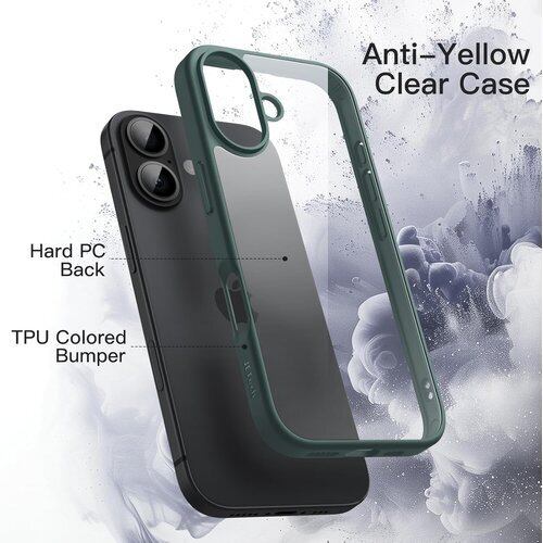 JETech iPhone 17 6.3インチ用 ケース 耐衝撃スマホバンパーカバー ソリッドカラー マットTPUフレーム 傷つけ防止 クリアバック ダークグリーン 11