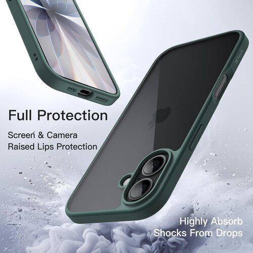 JETech iPhone 17 6.3インチ用 ケース 耐衝撃スマホバンパーカバー ソリッドカラー マットTPUフレーム キズつけ防止 クリアバック (ダークグリーン)