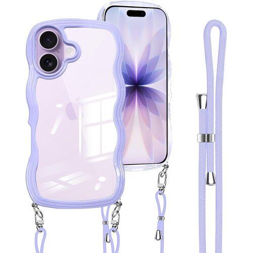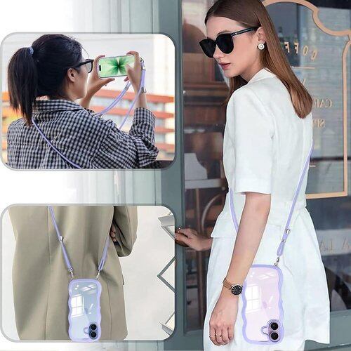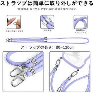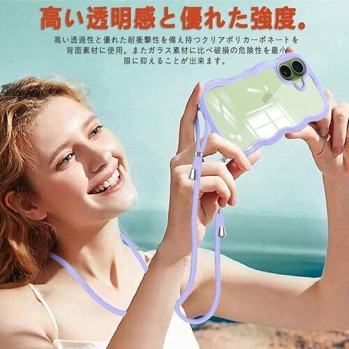 iPhone 17 用の ケース ショルダー ストラップ iPhone 17 用の カバー 斜めかけ 肩掛け 首掛け 韓国 クリア アイフォン17 スマホケース パープル 13