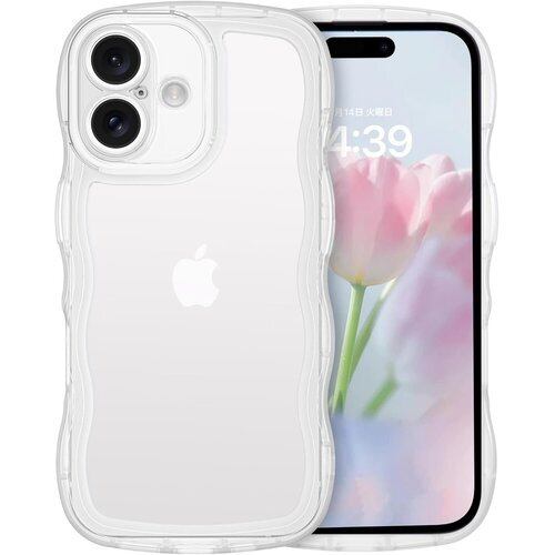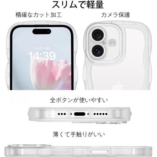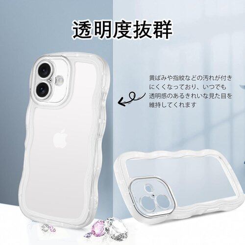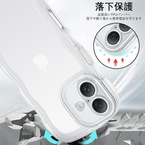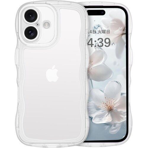 VENINGO いPhone 17用 ケース クリア ウェーブ おしゃれ TPU+PC 韓国 かわいい 可愛い スマホケース 人気 シンプル 滑り止め 薄型 軽量 耐衝撃 指紋防止 レンズ保護 ストラップホール付き シリコン TPU バンパー アイフォン17用ケース 6.3インチ 透明 14