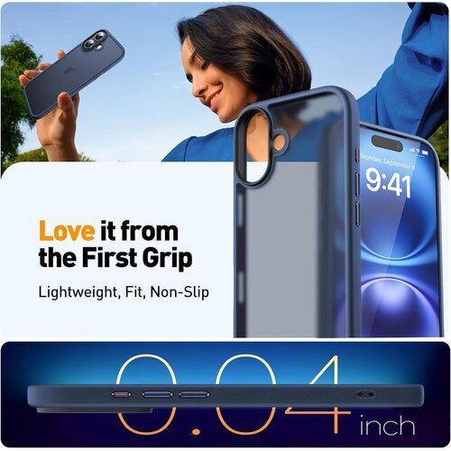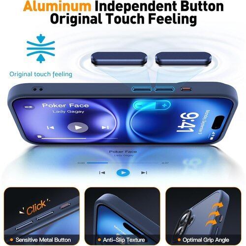 Anqrp iPhone 17用 ケース 半透明 マット 耐衝撃 滑り止め 米軍MIL規格 指紋防止 スマホケース アイフォン ストラップホール付き ワイヤレス充電対応 アイホン17 カバー 6.3インチ ブルー 18