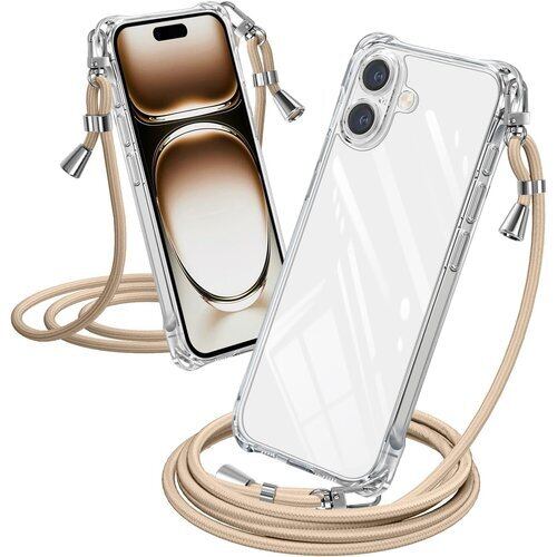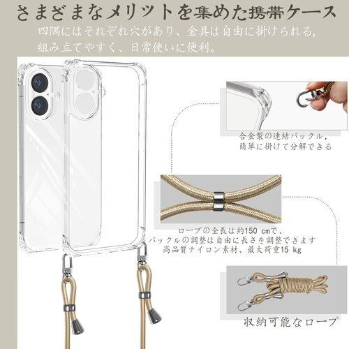 XIOYATY iPhone 17 用の ケース クリア ショルダー 耐衝撃 アイフォン17 カバー ストラップ 透明 スマホケース 肩がけ 首掛け 紐付き 縄掛け 斜めがけ 調節可能なショルダー TPUスマホ ゴールド 19