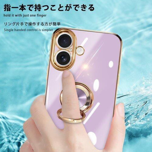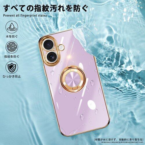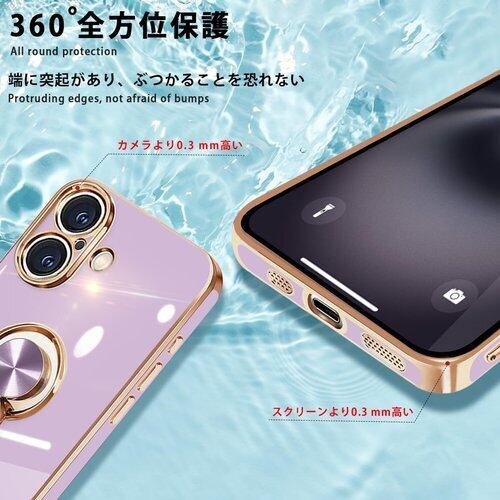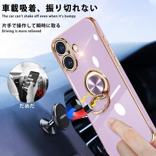 danliangqifei iPhone 17 用の ケース リング 耐衝撃 360°回転 スタンド機能 車載ホルダー対応 カバー アイフォン17スマホケース 携帯ケース 保護カバー レンズ保護 ストラップホール付き パープル 20
