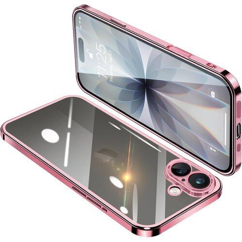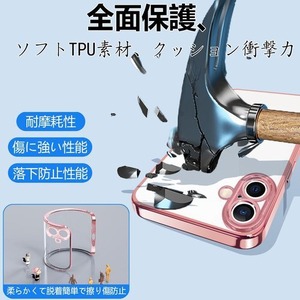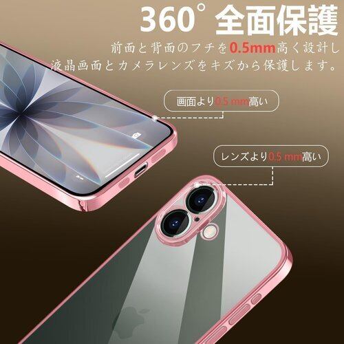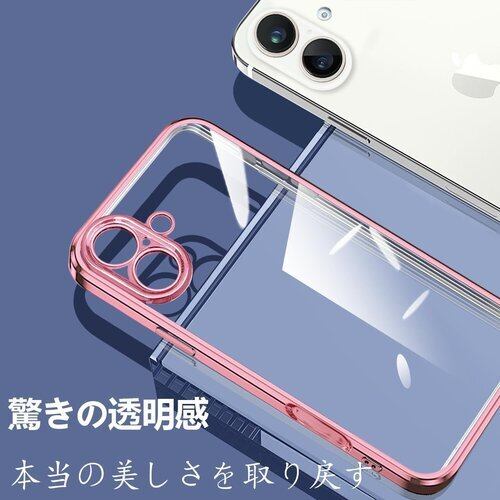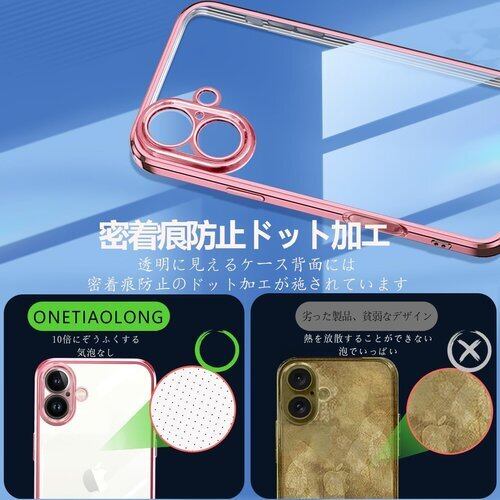 ONETIAOLONG iPhone17 用のケース クリア アイフォン17 用の カバー 透明 スマホケース 耐衝撃 軽量 メッキ加工 TPU 薄型 ストラップホール付き 滑り止め 落下防止 6.3インチ ローズゴールド 22