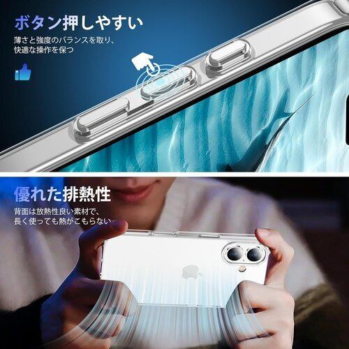 【絶妙バランス・快適操作】クリアケースの保護性能を保ちながら、スマートさを損なわないよう、薄さと強度のバランスを取り、手にフィットする程よい厚みで、快適さが保ち、最適な設計で作り出す。アイフォン17のボタンやレンズなどの細部に基づいて設計された専用スマホケースは、ぴったりとフィットしています。ボタン、カメラ位置も含めて寸法はバッチリでスマホケースをつけていないかのように快適に使用できます。