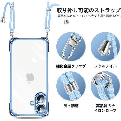 NISIILNG iPhone 17 用 ケース クリア ショルダー iPhone17 スマホケース アイフォン17 カバー 肩掛け 斜めかけ 縄掛けケース 透明 薄型 軽量 耐衝撃 TPU ストラップ付き 紐付き 斜めがけ 織りストラップ付き ネックストラップ ショルダー 縦/横 2WAY 長さ調整可能 取り外し可能 落下防止 紛失防止 ブルー 38