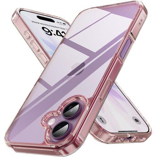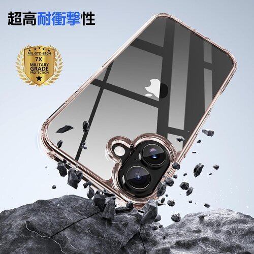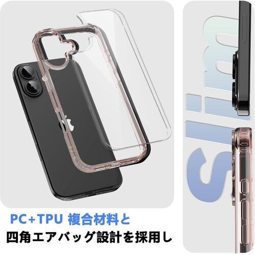 PinLiSheng iPhone 17 ケース クリア PC背面 + TPUバンパー 2重構造 黄変防止 耐衝撃 滑り止め 指紋防止 米軍MIL規格 ワイヤレス充電対応 スマホケースピンク 40