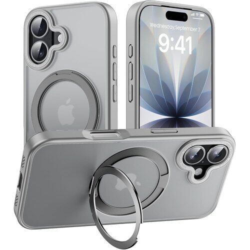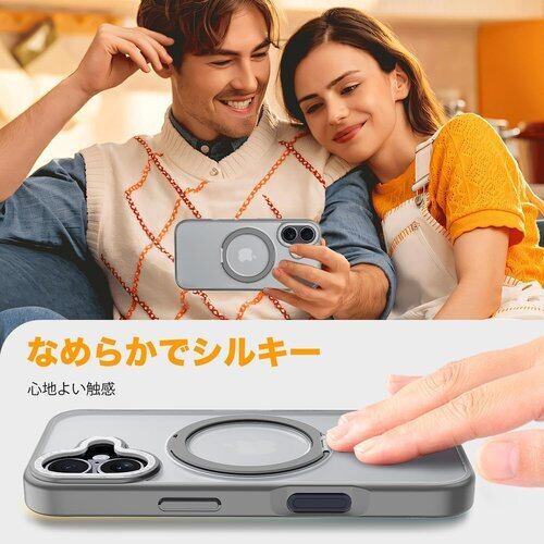 多機能360度回転スタンド Mcoifull 適用 iPhone 17 ケース マグネット搭載 ワイヤレス充電 耐衝撃 マット感 半透明 指紋防止 アジャスタブルスタンド アイフォン17 ケース グレー 41