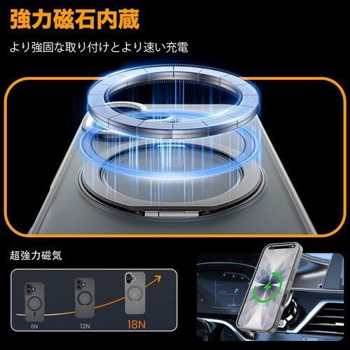 【MagSafe対応】アイフォン ケースをつけたままマグセーフ機能を快適に使用できます。背面に薄くてコシのある仕上がりを目指しますマグネット内蔵しています、ワイヤレス充電や車載ホルダーやアクセサリとのあらゆる充電に安定で接着ができ、差し込みのいらないより簡単により素早く充電できます