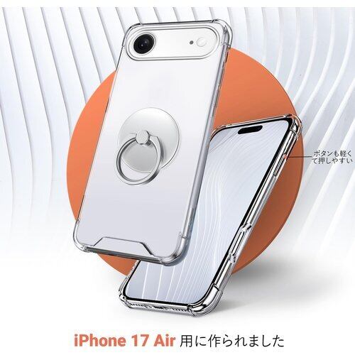 Rockaway 互換性 iPhone 17 Air用 ケース リング付き 耐衝撃 耐久 すり傷防止 滑り止め スタンド機能 軽量 薄型 クリア TPU 透明 スマホケース アイフォン17エア 用カバー - クリア 43