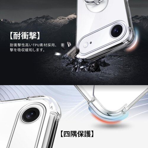 【耐衝撃】ケースの四隅にはエアクッション設計が採用されており、落下時の衝撃を最小限に抑え、キズや破損を防ぎます。さらに、エッジ部分をわずかに高く設計することで、カメラレンズとスクリーンが擦りキズから保護されます。