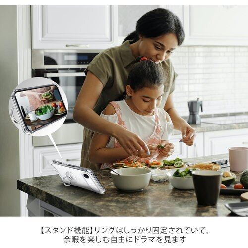 【リング付き&スタンド機能】リングは360度回転可能で、180度の角度調節も可能です。ケースを横置きにするとスタンド機能になり、持たずに動画鑑賞などを楽しむことができます。指をリングに通して一本指で持つことで、片手で携帯を操作でき、落下を防止します。