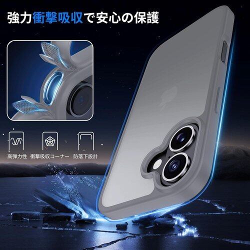 Aunote 対応 iPhone 17 ケース マット半透明 米軍MIL規格 耐衝撃 耐久性 ワイヤレス充電 黄ばみなし 指紋防止 軽量 スマホケース アイフォン17 ケース カバー グレー 52