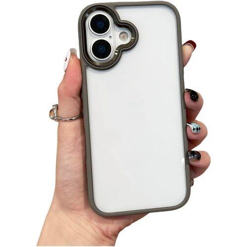 iPhone17 対応 ケース クリア 透明 アイフォン17 用 カバー 2色 配色 薄型 可愛い レディース 背面カバー ハードケース 嵌め込み ,グレー