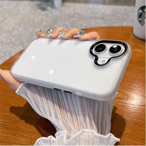 iPhone17 対応 ケース クリア 透明 アイフォン17 用 カバー 2色 配色 薄型 可愛い レディース 背面カバー ハードケース 嵌め込みグレー 53