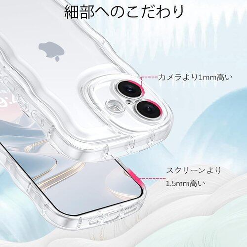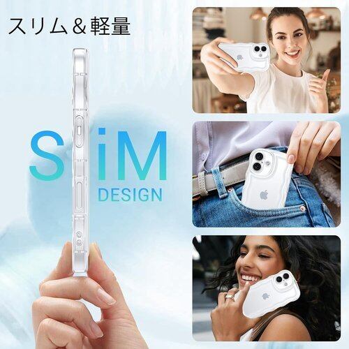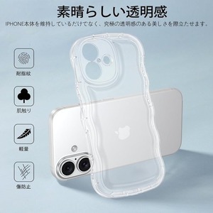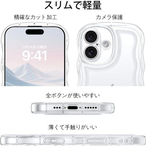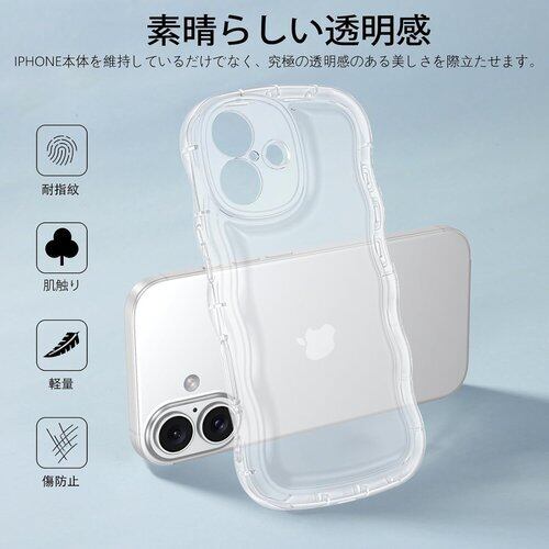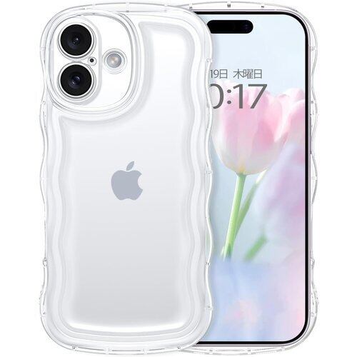 VENINGO iPhone 17専用ケース なみなみ クリア おしゃれ 韓国 かわいい 可愛い 人気 スマホケース シンプル ウェーブ 滑り止め 薄型 軽量 耐衝撃 指紋防止 レンズ保護 TPU ストラップホール付き あいふぉん17専用ケース 6.3インチ 透明 56