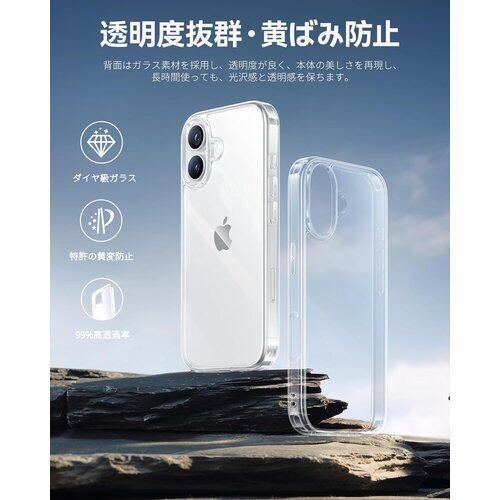 【2025最新改良・黄変防止強化】本製品の背面素材はガラスで、その特性により黄ばみが起こりません。さらに、AF防指紋コーティングを施しているため、指紋や汚れがつきにくく、サッと拭くだけで簡単にきれいになります。ケースを使いやすく、清潔に保つことができます。また側面には、ドイツ製バイエルTPU素材を採用し、TPUポリマーにUV剤を添加して黄変防止性能を高めています。長時間使用しても、光沢と透明感を維持します。