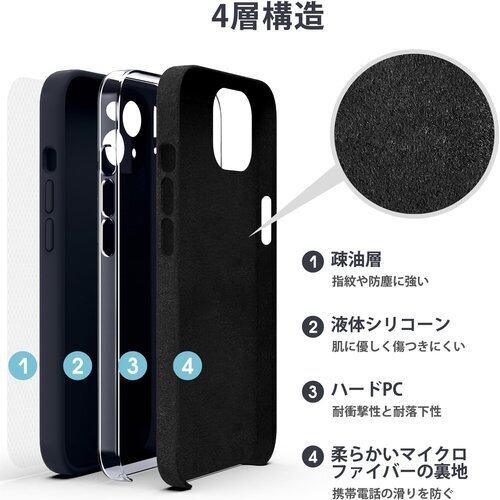 【耐衝撃・耐落下・キズ防止】iPhone 14 液状シリコンケース、4層プロセス【液状シリコンケース】【硬質PCボード】【マイクロファイバーパッド】【撥油層】で携帯を摩耗や損キズから守ります。